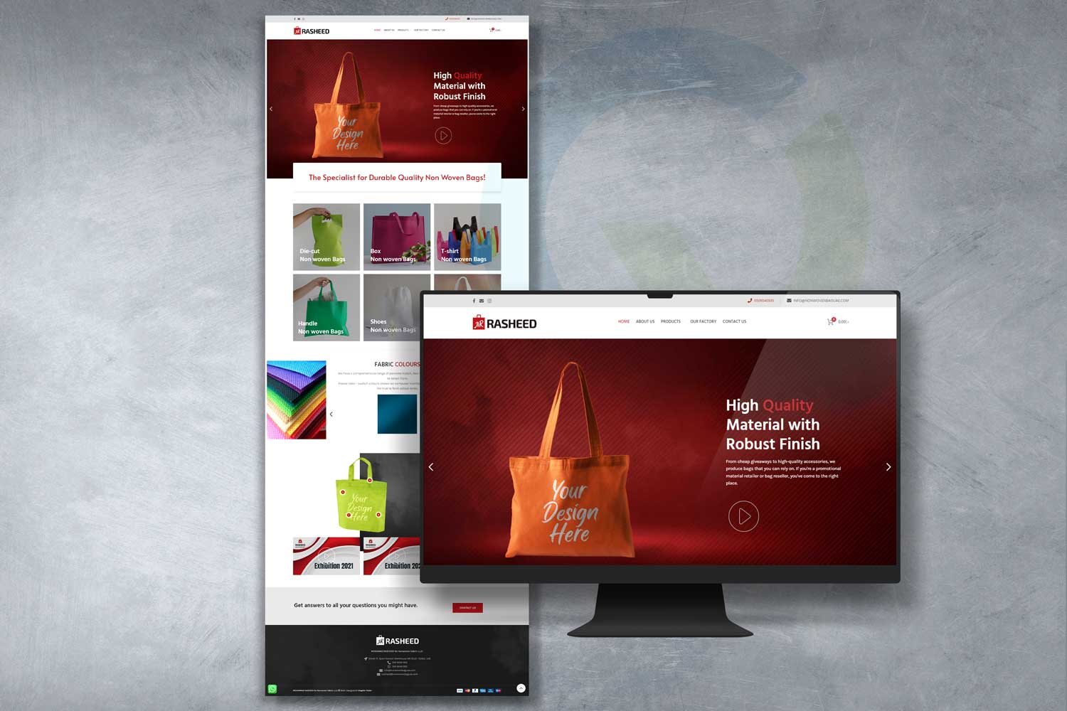 تصميم متجر إلكتروني مبتكر وعصري لمصنع الرشيد، المتخصص في إنتاج شنط القماش غير المنسوج.